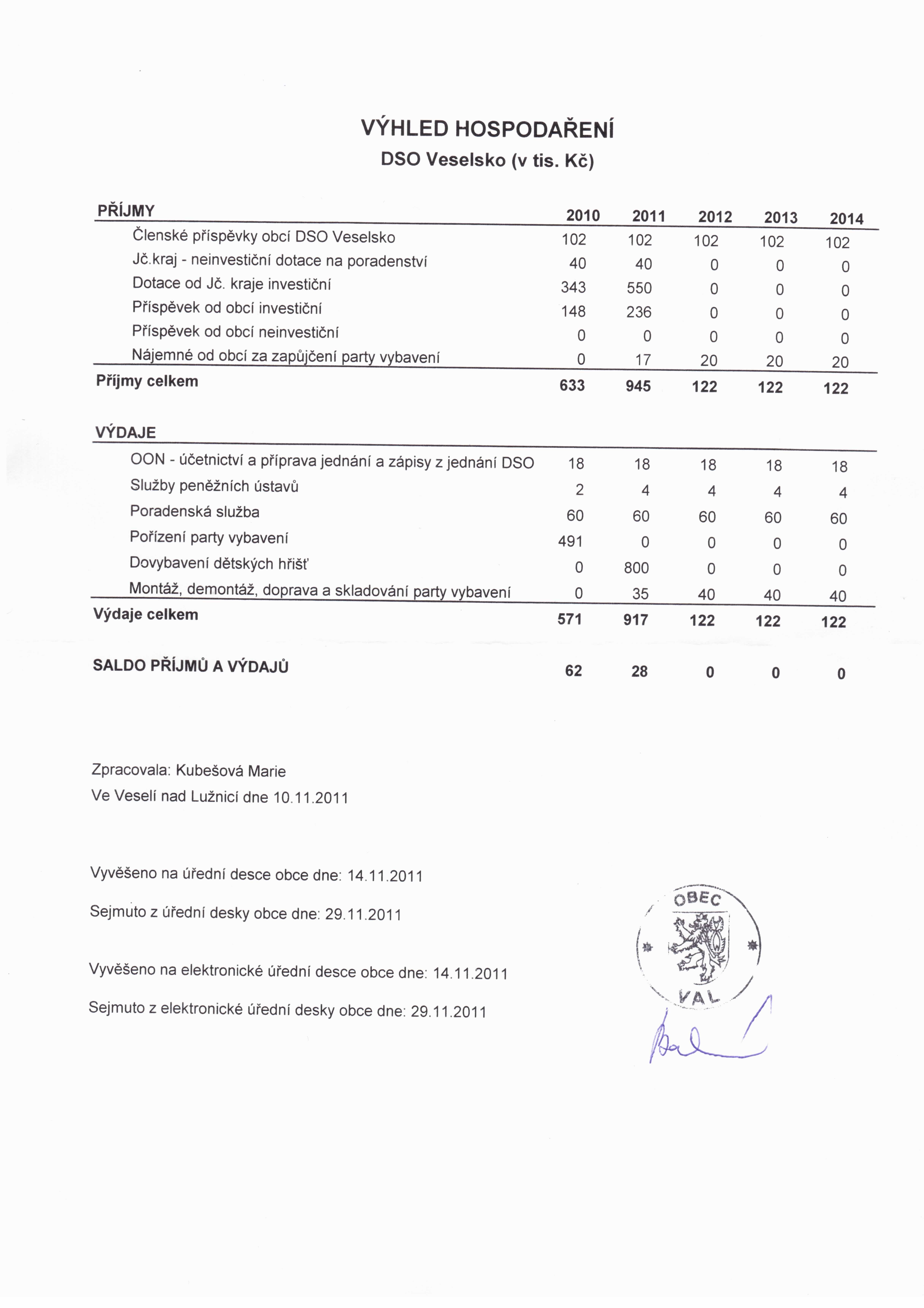 Návrh výhledu hospodaření DSO Veselsko 2014 2015
