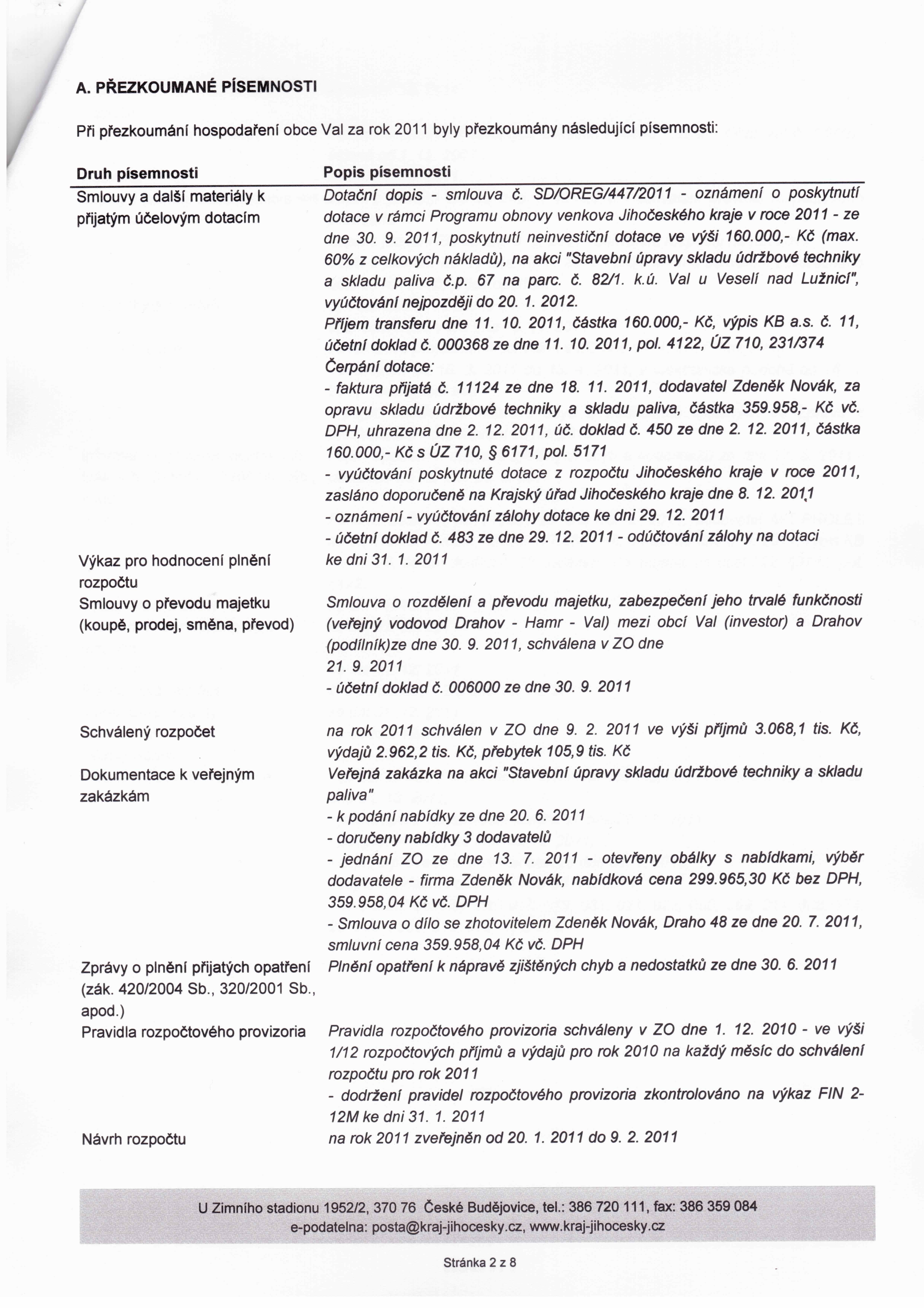 Zprava auditora o prezkoumani hospodareni DSO Veselsko za rok 2011.pdf vyvěšeno 7.5.2012 sňato 22.5.2012