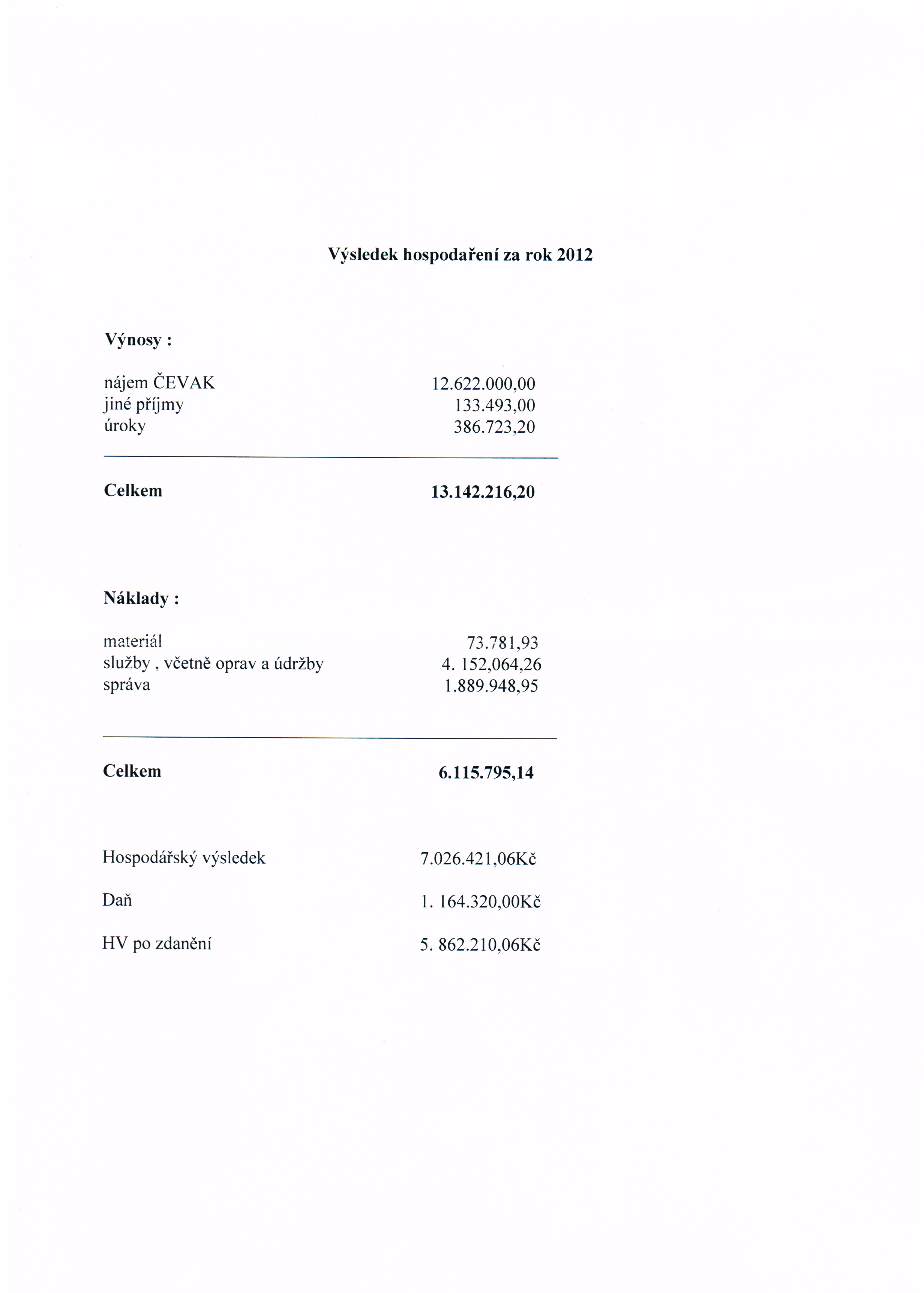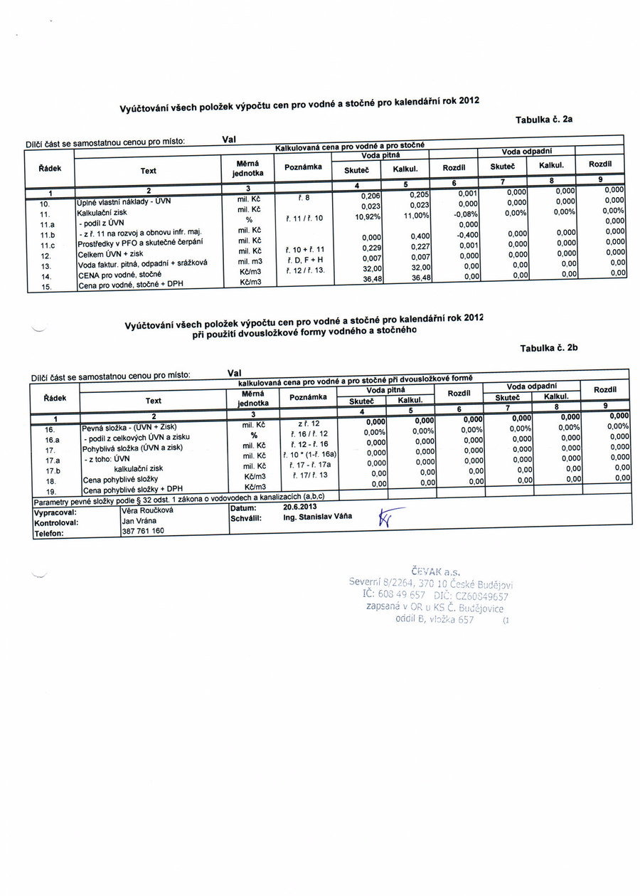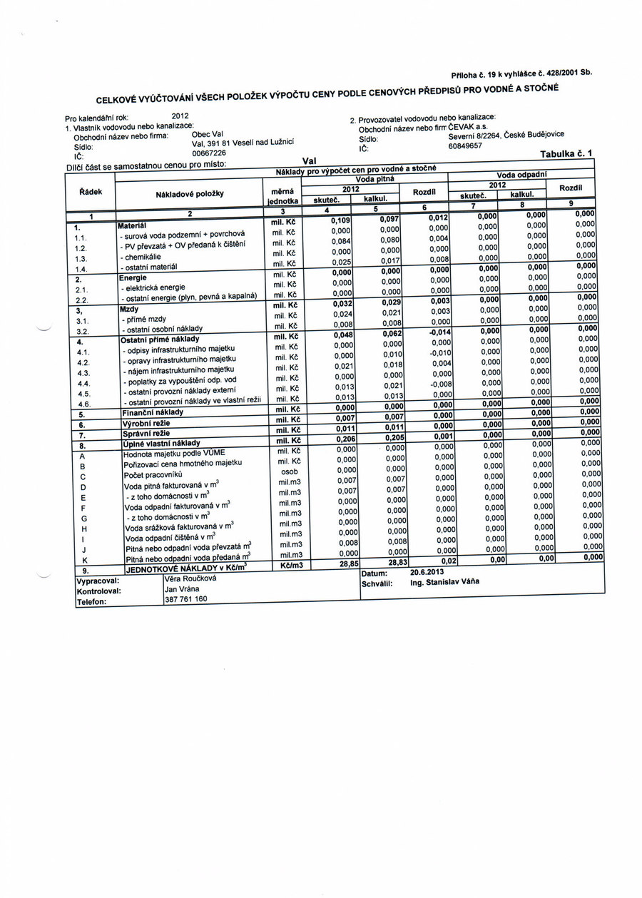 CELKOVÉ VYÚČTOVÁNÍ CENY VODNÉHO 2012