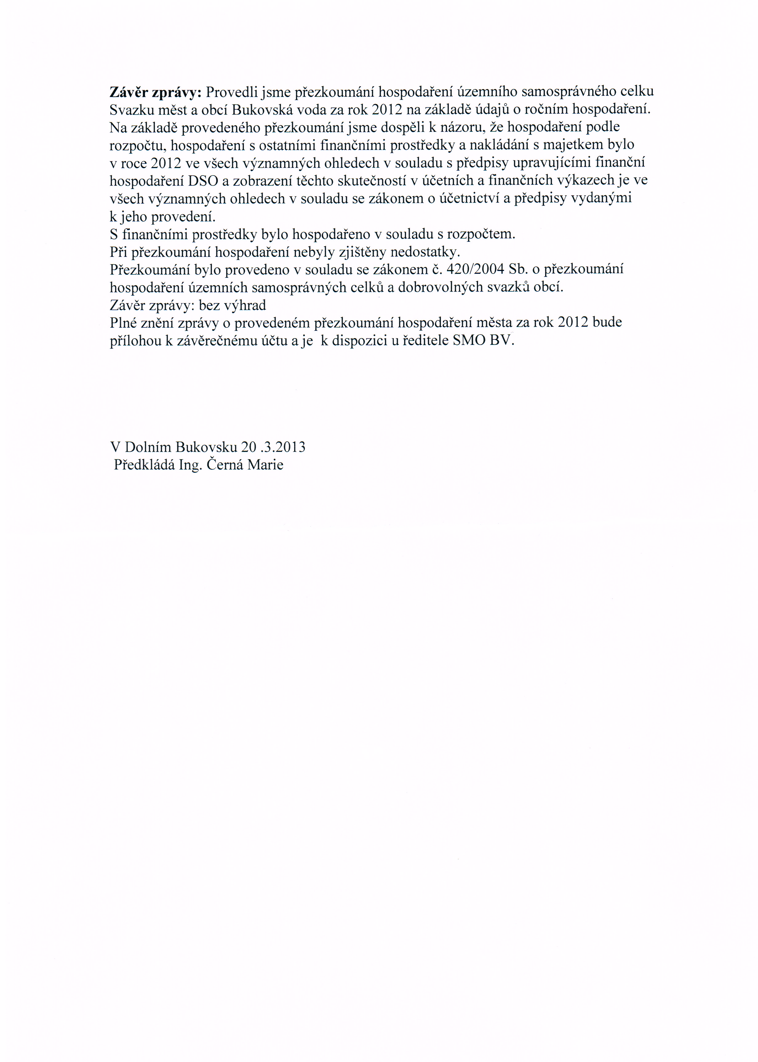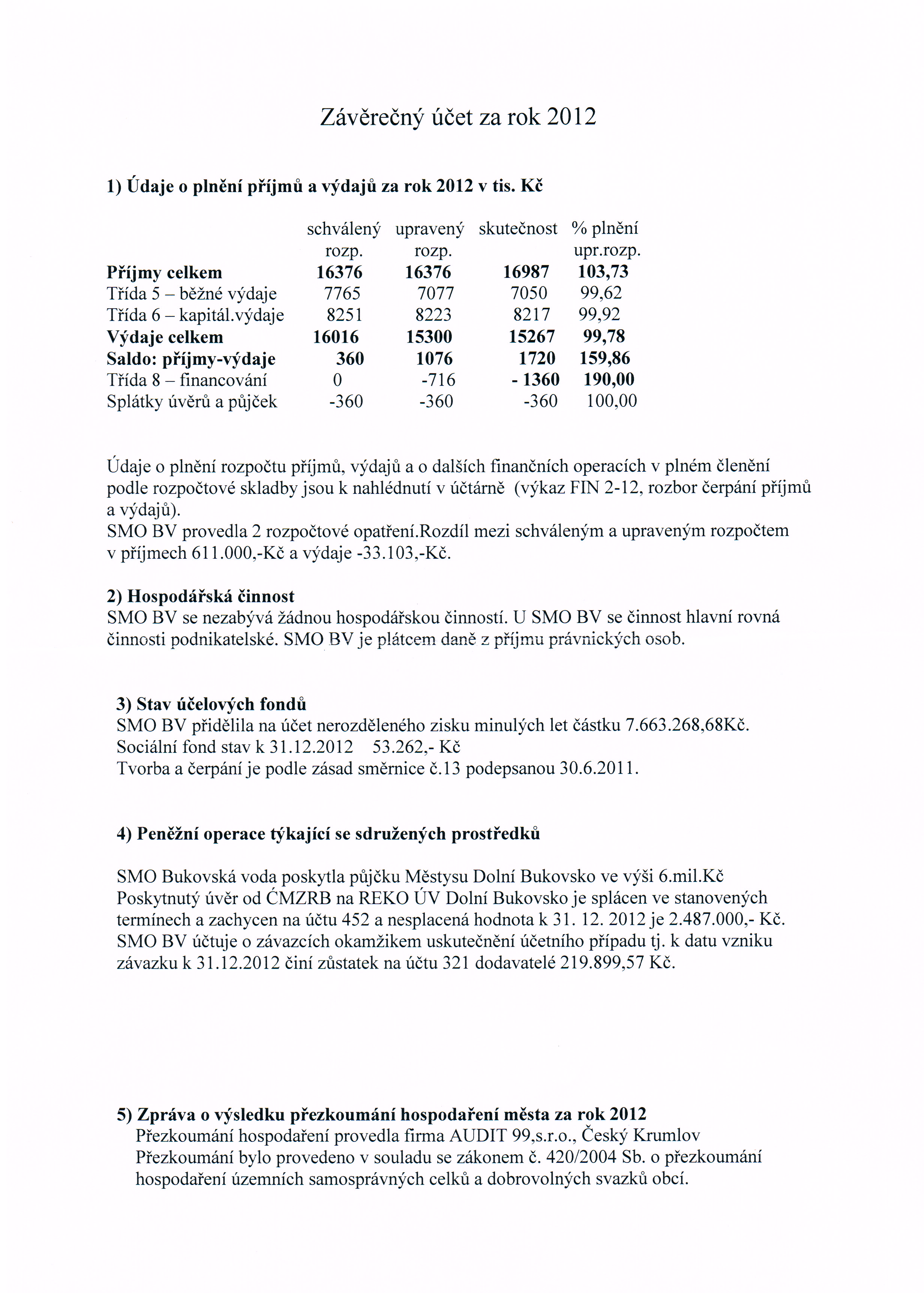 ZÁVĚREČNÝ ÚČET DSO 2012